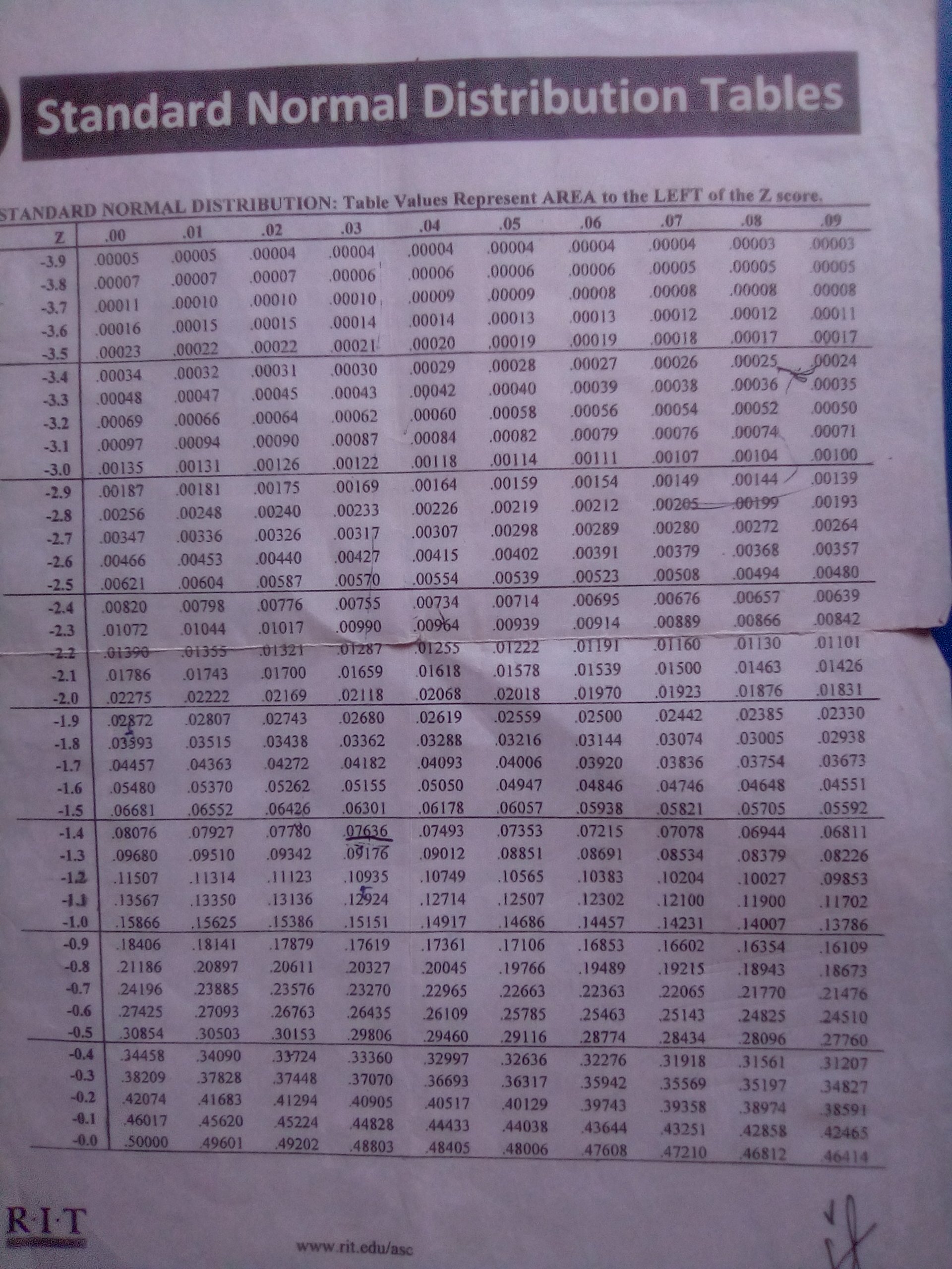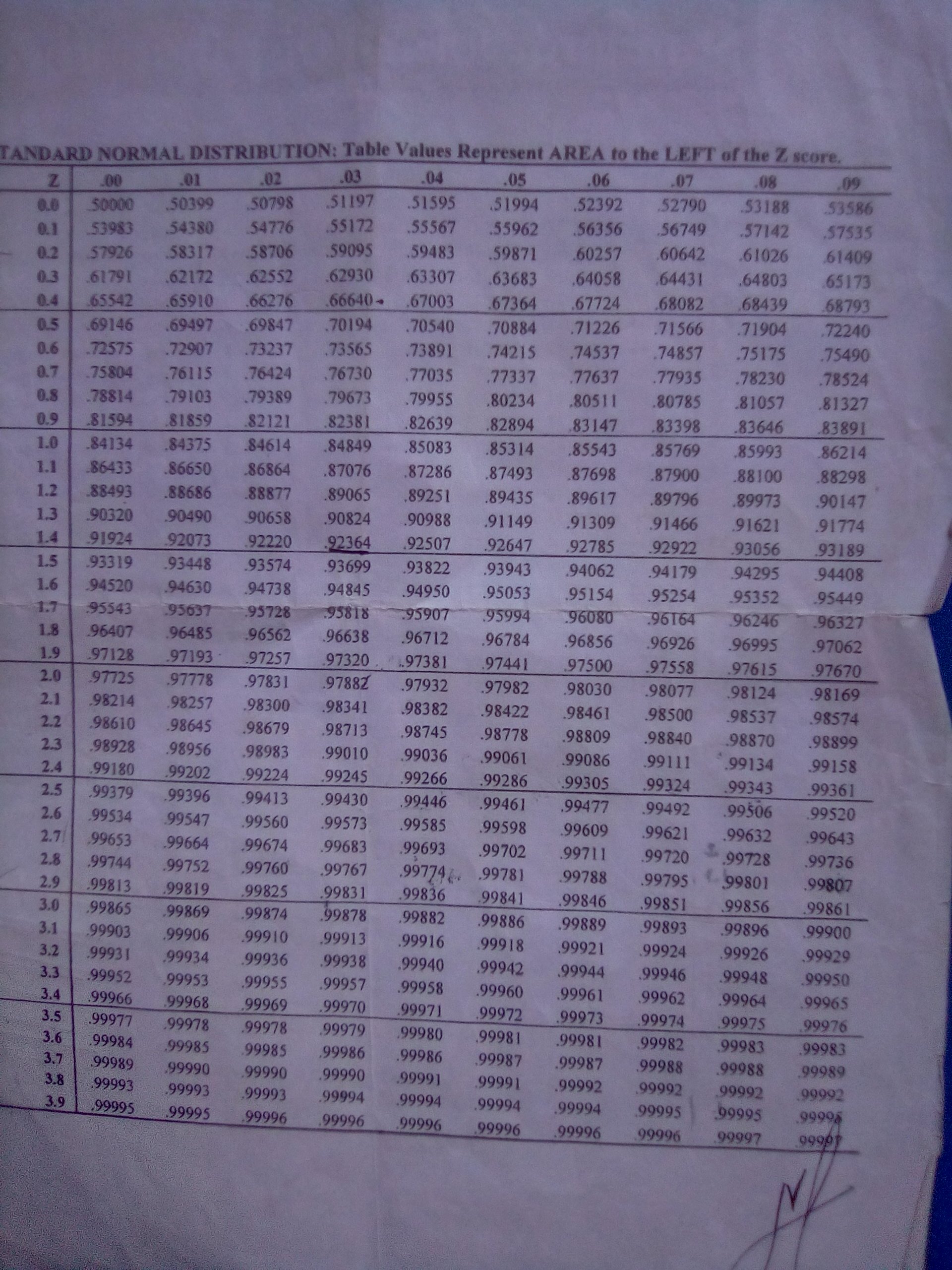 Step 9: Find the are require needed by finding it in the table of standard normal distribution.